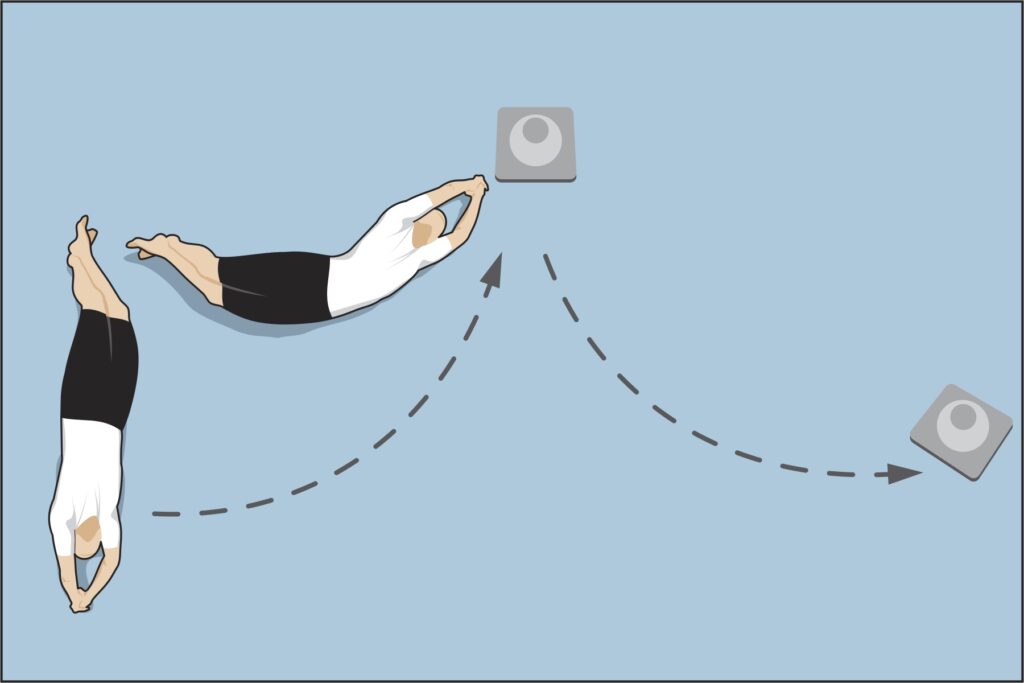 To begin understanding movement as a teacher, refer to the Gecko Relay lesson. Look at the sequence of steps in the lesson. The movement is designed to instigate possibilities from the toes into a belly crawl. The floor is used to sense a three-point pressure from the foot, knee, and hand into a climb. (Part II lessons are foundational to “movement as a teacher.” Refer specifically to the lessons Fish Roll, Gecko Relay, and Gecko Climb in Part II.)